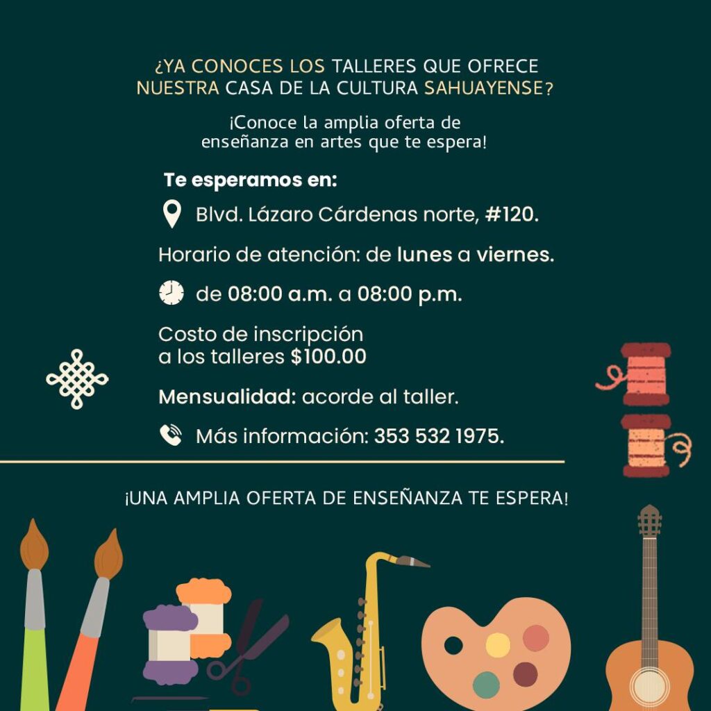Sahuayo, Michoacán. – Si te apasiona la música, la danza, el arte o la literatura, esta es tu oportunidad para formar parte de un espacio dedicado al desarrollo del talento y la creatividad. La Casa de la Cultura “Mtra. Petrita Cortés de Sahagún” ha abierto sus puertas e inscripciones para sus talleres y actividades culturales, dirigidos a personas de todas las edades.