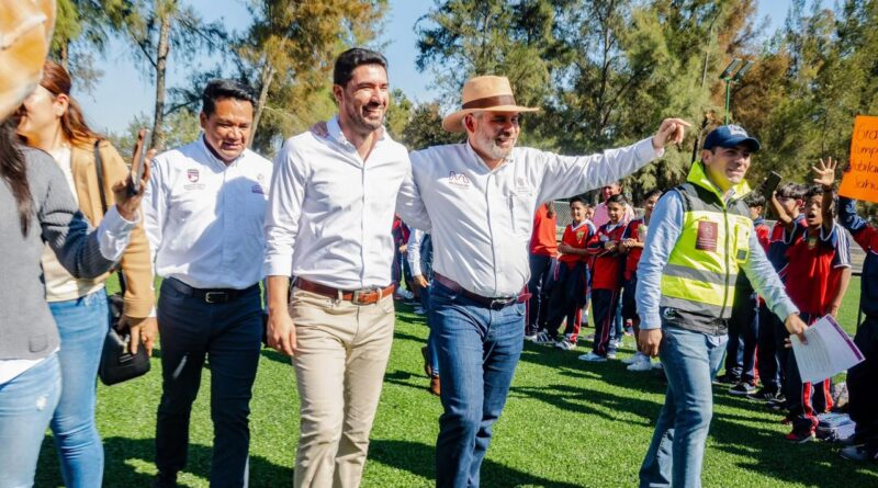 Alfredo Ramírez Bedolla y Manuel Gálvez Inauguran la Cancha de Fútbol 7 en la Unidad Deportiva de Sahuayo