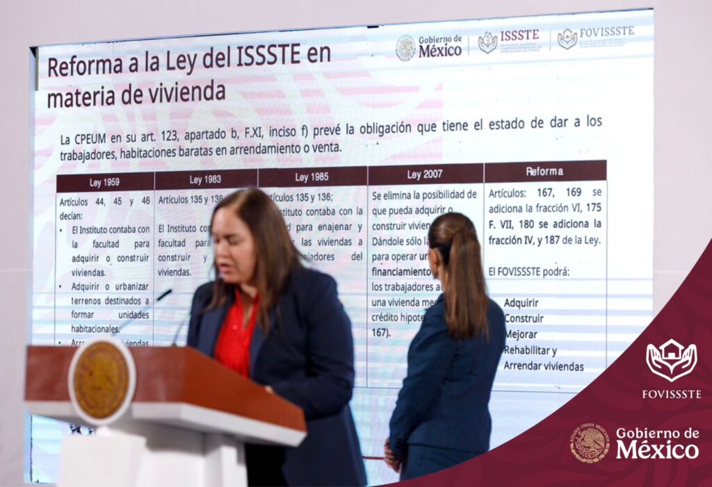 “Desde la ley de 1959, el Instituto contaba con la facultad para adquirir o construir viviendas, adquirir o urbanizar terrenos destinados a formar unidades habitacionales y arrendar las viviendas a los trabajadores. (…) Y en el 2007 es cuando se elimina esta posibilidad de adquirir o construir viviendas. (…) La reforma que se está proponiendo, que incluye cinco artículos, con esta el Fovissste podrá adquirir, construir, mejorar, rehabilitar y arrendar viviendas”, concluyó.