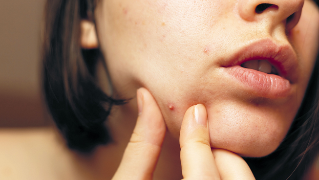 Ah, el acné, ese azote de los adolescentes y muchos adultos. Aún no entendemos por completo sus causas, pero tiene que ver con la microbiota de la piel. Sabemos que es una enfermedad inflamatoria crónica, es decir que activa sin parar las células del sistema inmunitario de la piel. Se manifiesta con puntos blancos, puntos negros y áreas rojas e inflamadas cuando se obstruyen los poros. Pueden desencadenarlo cambios hormonales como los de la pubertad, el estrés o, en mujeres, los periodos menstruales, el embarazo y el uso de ciertos anticonceptivos. También pueden causarlo productos cosméticos o capilares grasosos, medicamentos como los esteroides y la testosterona, la sudoración intensa y la humedad. Tocar o frotar excesivamente la piel puede agravar el problema.