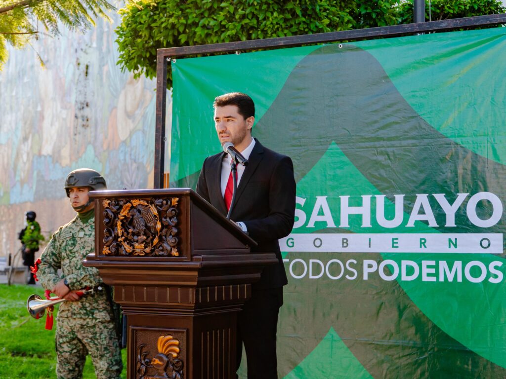 Sahuayo, Michoacán – En un acto solemne y lleno de civismo, el Presidente Municipal de Sahuayo, Dr. Manuel Gálvez, acompañado por la Síndica Municipal, el Secretario del Ayuntamiento, integrantes del Honorable Cabildo y diversas autoridades locales, encabezó la ceremonia en honor a uno de los símbolos más representativos de nuestra identidad nacional: la Bandera de México.