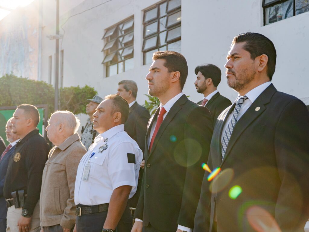 El el acto se llevo acabo el izamiento de la Bandera Nacional, ceremonia en la que participaron la Banda de Guerra del Ejército y el personal de la Policía Municipal, reafirmando así el respeto y compromiso con los valores patrios.
