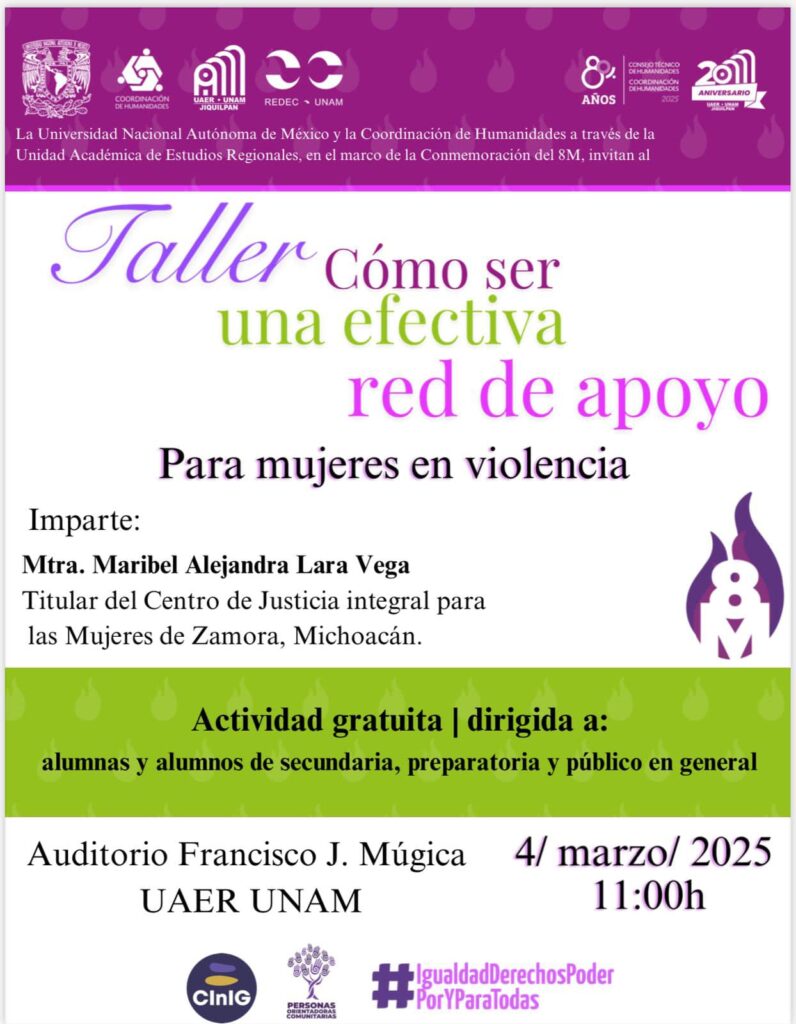 La UAER UNAM invita al taller: *cómo Ser una efectiva red de apoyo para mujeres en violencia