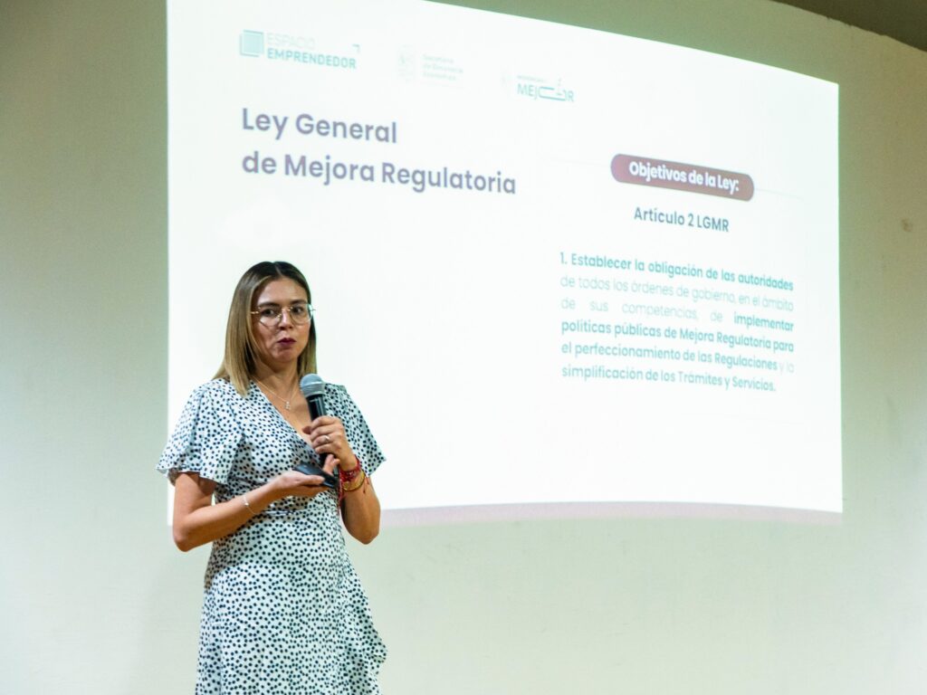 La Mejora Regulatoria se refiere a un proceso estratégico que busca mejorar la calidad y eficiencia de las regulaciones gubernamentales, reduciendo la burocracia y promoviendo un ambiente favorable para el desarrollo económico. Durante la conferencia, la Lic. Sofía Beltrán Pacheco, titular de la Dirección de Mejora Regulatoria de la SEDECO, compartió su experiencia y conocimientos sobre este proceso, destacando su relevancia para fomentar un gobierno más ágil y accesible para los ciudadanos.