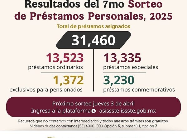 Otorga ISSSTE más de 31 mil préstamos personales en el séptimo sorteo del 2025