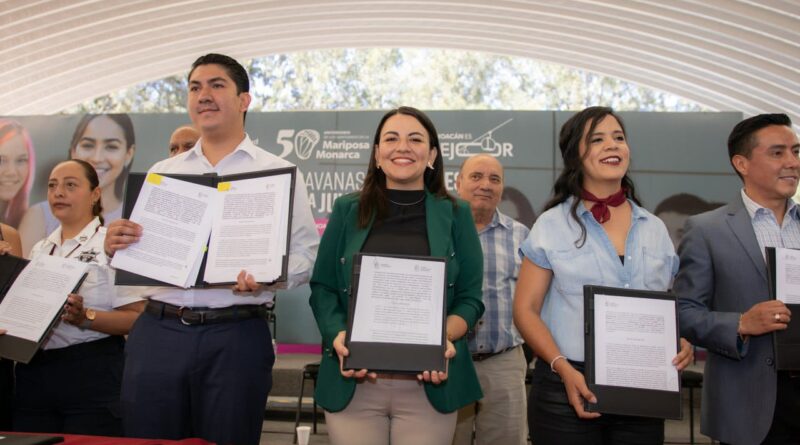 En representación del gobernador Alfredo Ramírez Bedolla, la titular de la Sedebi, Andrea Serna Hernández y el director del Ijumich, Lenin López García, firmaron el convenio de colaboración interinstitucional para brindar apoyo integral a jóvenes de 12 municipios del estado en diversas áreas de para su desarrollo.