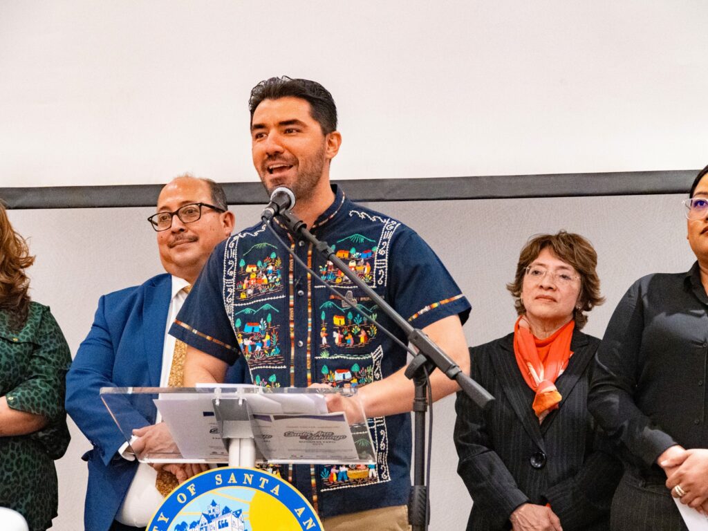 Santa Ana, CA.- En un esfuerzo por fortalecer lazos culturales y comerciales, el presidente municipal de Sahuayo, Manuel Gálvez, junto con Valery Amezcua, Mayor de Santa Ana, CA; Audrey Rivera Gómez, Cónsul Titular de Santa Ana, CA; Álvaro Núñez, City Manager; y el QFB. José Manuel Hinojosa Pérez, Diputado Federal en México, inauguraron la Expo Artesanal, Cultural y de Negocios «Herencia Michoacán».