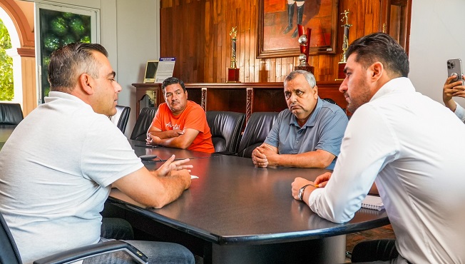 Sahuayo, Mich. – En un ambiente de diálogo y colaboración, el presidente municipal de Sahuayo, Manuel Gálvez Sánchez, sostuvo una reunión con dirigentes del Sindicato de Camiones de Transporte de Materiales, con el objetivo de escuchar sus inquietudes y explorar soluciones que impulsen su labor dentro del desarrollo económico local.