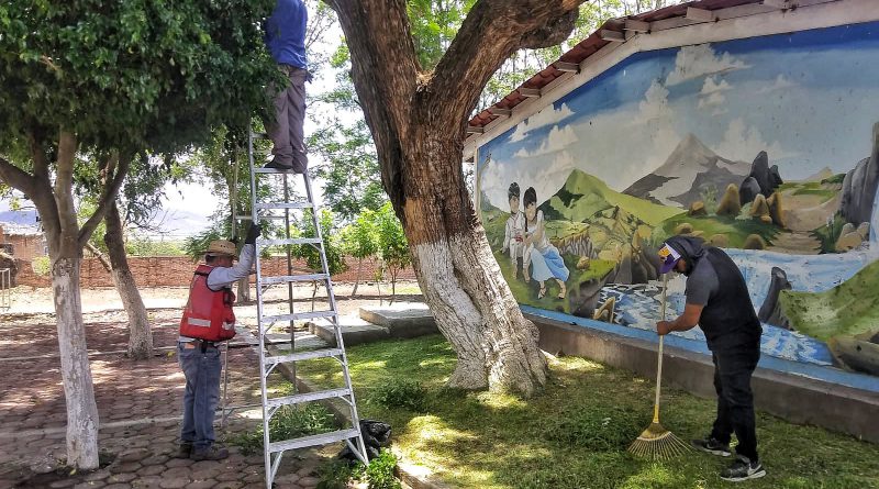 Realizan labores de poda y mantenimiento en primaria de San Antonio Guaracha