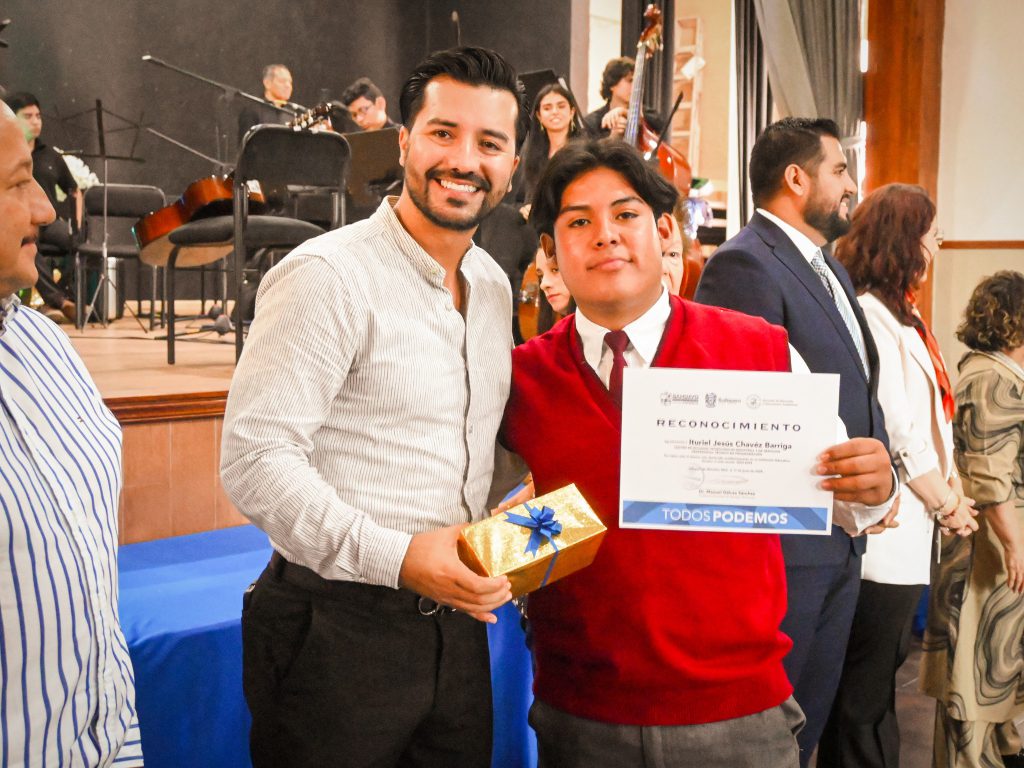 Durante la ceremonia, también se otorgó un reconocimiento especial al Mtro. Juan Arzate, músico y educador con una destacada trayectoria, por su valiosa contribución a la formación de generaciones y al fortalecimiento de la vida cultural del municipio. Este homenaje resalta el papel fundamental de los docentes y promotores culturales en la construcción de una sociedad con mejores oportunidades educativas y artísticas.