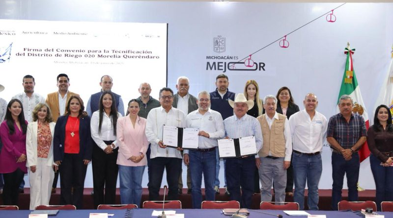 El gobernador Alfredo Ramírez Bedolla firmó un convenio con la Comisión Nacional del Agua (Conagua) para tecnificar los módulos de riego II, III y IV del Distrito de Riego 020 Morelia-Queréndaro con una inversión de 220 millones de pesos.
