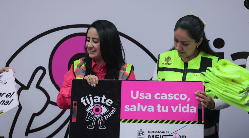 Invita Gladyz Butanda a ponerse el casco en Apatzingán