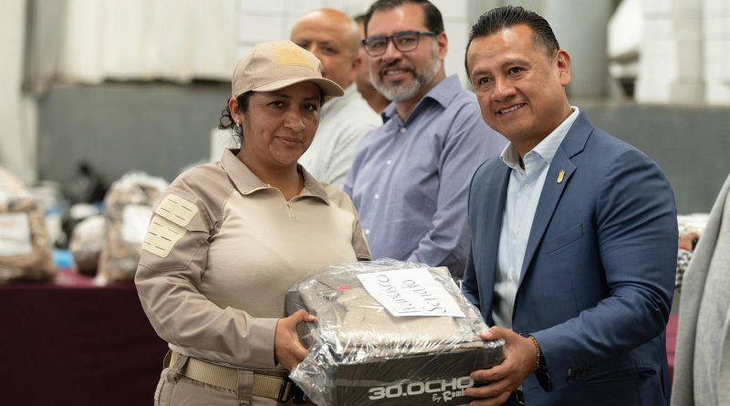 Acompañado por el secretario de Seguridad Pública, Juan Carlos Oseguera Cortés, el encargado de la política interna, a nombre del gobernador Alfredo Ramírez Bedolla, entregó paquetes con botas, camisas y pantalones especialmente diseñados para sus labores de seguridad, a las y los representantes de los cuerpos de vigilancia de las comunidades.