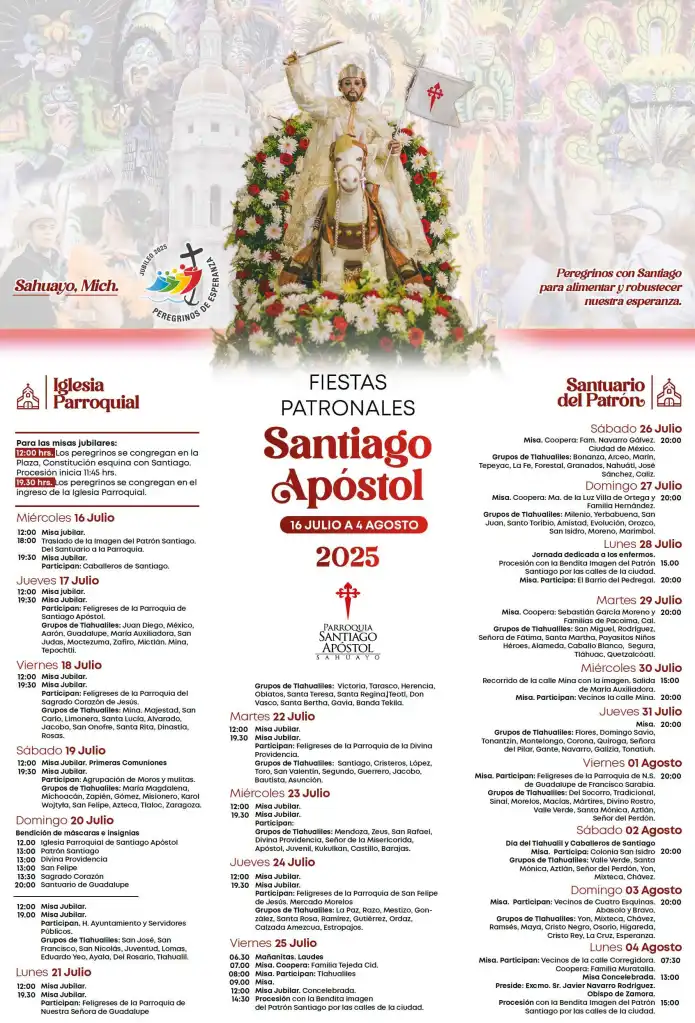 MunicipiosSahuayo PROGRAMA RELIGIOSO DE LAS FIESTAS EN HONOR A SANTIAGO APOSTOL 2025 julio 9, 2025 admin
