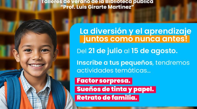 Este periodo vacacional, la Biblioteca “Prof. Luis Girarte Martínez”, ubicada en el Parque Lineal Manuel Gómez Morín, en Sahuayo, te invita a inscribir a tus hijos en el curso de verano “Mis Vacaciones en la Biblioteca 2025”.