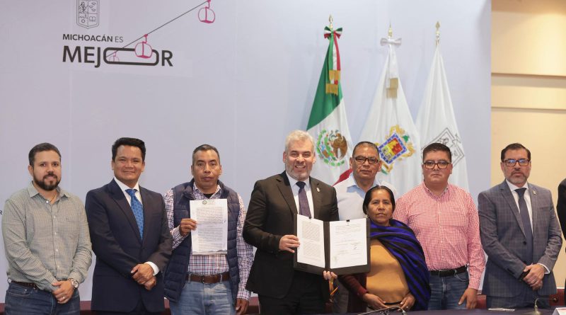 Firma Bedolla y Concejo Mayor de Cherán convenio para reforzar ronda comunitaria