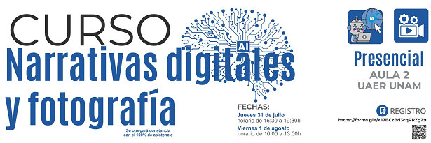 La Unidad Académica de Estudios Regionales (UAER – Jiquilpan) invita al público interesado a participar en el curso “Narrativas digitales y fotografía”, que se llevará a cabo los días 31 de julio y 1 de agosto, en modalidad presencial y con cupo limitado.