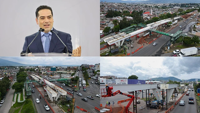 El titular de la SCOP informó que la construcción de la nueva vialidad avanza con la edificación del puente sur, en el tramo con sentido Tecnológico-Charo. La nueva obra contará con 10 carriles en total: seis elevados y cuatro a nivel en ambos sentidos.