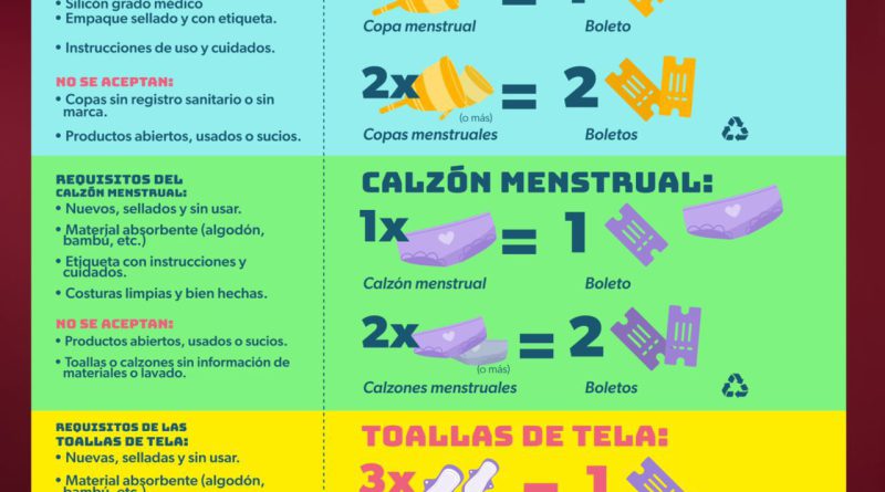 Para conseguir boletos de cancha, se aceptarán copas menstruales con registro sanitario, calzones menstruales reutilizables nuevos y sellados, y toallas de tela reutilizables. Una copa o un calzón o tres toallas equivalen a un boleto, mientras que para obtener dos boletos será necesario entregar dos copas o dos calzones o seis toallas reutilizables.