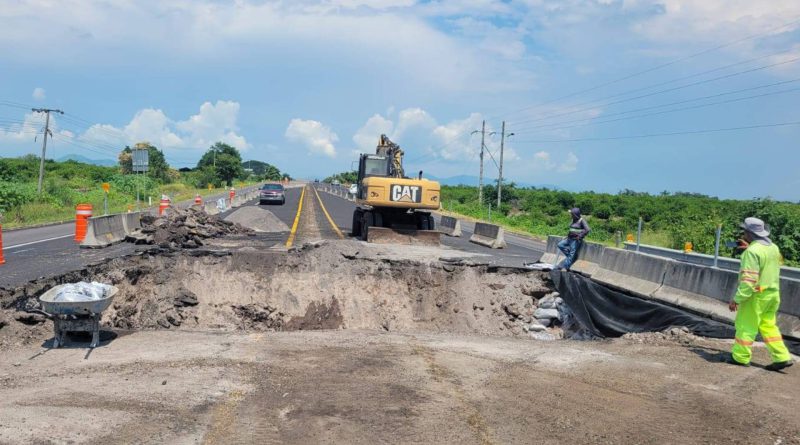 Las cuadrillas de la Concesionaria de Autopistas de Tierra Caliente, S.A. de C.V., empresa que opera dicho segmento carretero bajo el esquema de Proyecto para la Prestación de Servicios (PPS), laboran sin descanso en la zona. La prioridad es estabilizar el terreno antes de proceder al relleno, dadas las condiciones de la corriente de agua que aún fluye por debajo de la carpeta asfáltica.