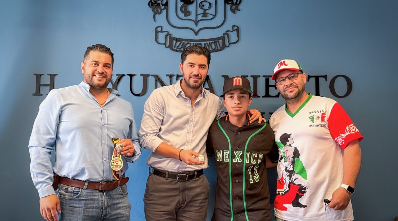 Sahuayo, Mich. — El presidente municipal, Dr. Manuel Gálvez Sánchez, recibió con orgullo y reconocimiento al joven Ignacio Magallón García, integrante del equipo «México sin Fronteras», quienes representaron a nuestro país en la categoría U-16 de la World Series Caribbean Cataño 2025, celebrada del 25 al 29 de julio en Puerto Rico.