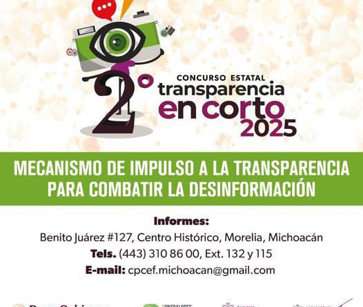 Si tienes entre 15 a 25 años aún estás a tiempo para participar en el Concurso Transparencia en Corto 2025, impulsado por la Secretaría de Contraloría de Michoacán, con el objetivo de fomentar la cultura de la transparencia, la rendición de cuentas y el combate a la corrupción.