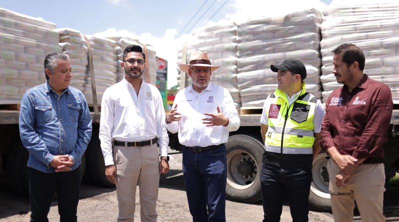 El gobernador Alfredo Ramírez Bedolla realizó la entrega de 200 toneladas de cemento del programa Obras por Cooperación de la Secretaría de Comunicaciones y Obras Públicas (SCOP), destinadas al desarrollo de acciones, como la rehabilitación de calles y trabajos de beneficio colectivo.
