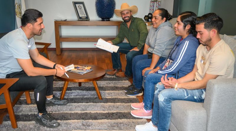 Sahuayo, Michoacán. – En un ambiente de alegría y cercanía con la comunidad, el presidente municipal, Dr. Manuel Gálvez, recibió con entusiasmo la visita de la encargada del orden de El Güirio, acompañada por vecinas y vecinos del lugar, quienes le extendieron la invitación formal a las tradicionales Fiestas Patronales en honor a San Miguel Arcángel, que se celebrarán del 27 al 29 de septiembre.