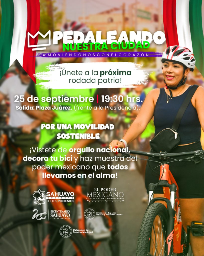La pasión por el ciclismo urbano, la convivencia familiar y el amor por México se unirán de nuevo este jueves 25 de septiembre con la esperada rodada “Pedaleando Nuestra Ciudad”, una iniciativa que fomenta el deporte, la movilidad sustentable y el orgullo patrio entre la población sahuayense.