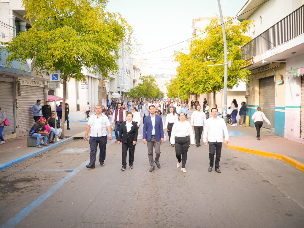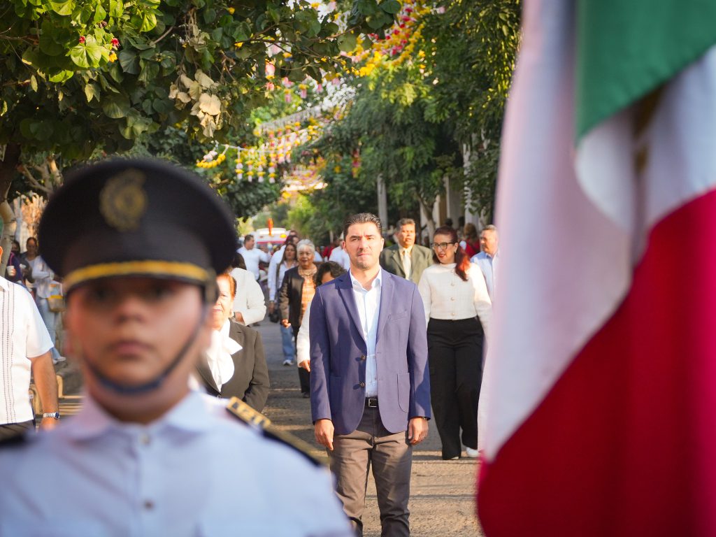 Durante el recorrido y la ceremonia oficial, el mandatario estuvo acompañado por la Síndica Municipal Hilda María Amezcua Gudiño; el Secretario del Ayuntamiento Mtro. José Roberto López Buenrostro, integrantes del H. Cabildo, así como autoridades educativas de nivel secundaria, medio superior y superior, quienes se sumaron al reconocimiento colectivo de esta fecha emblemática.