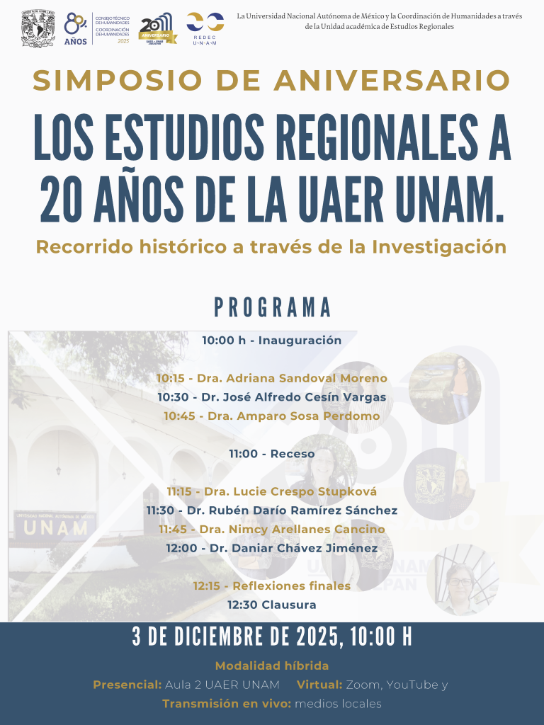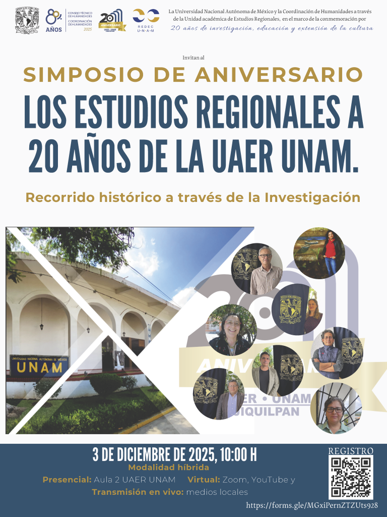 La Unidad de Estudios Regionales (UAER) de la UNAM, campus Jiquilpan, llevará a cabo este 3 de diciembre su Simposio de Aniversario, un espacio académico que marca 20 años de producción intelectual dedicada al análisis del territorio, la cultura, la historia y las transformaciones sociales de la región.