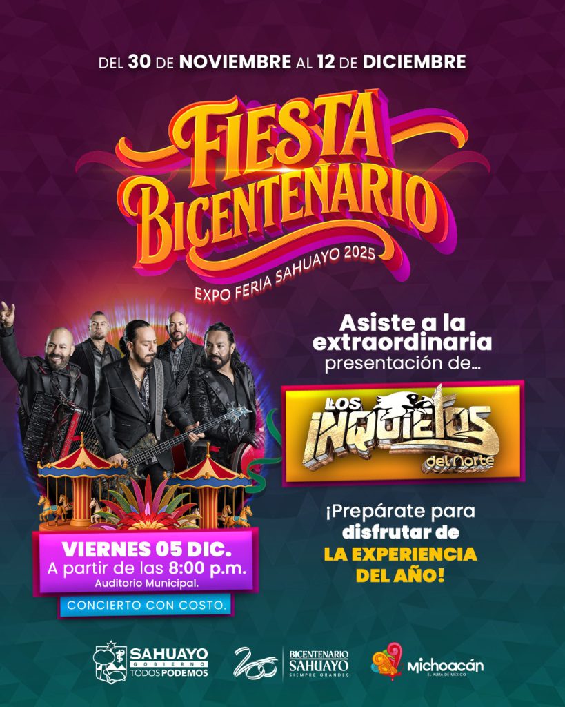 Sahuayo se prepara para recibir una de las veladas musicales más esperadas de la Expo Ferisa Sahuayo 2025, un encuentro donde la tradición, la fiesta y el poder de la música norteña se entrelazan para celebrar el Bicentenario de la ciudad. Este viernes 5 de diciembre, el Auditorio Morelos se transformará en el epicentro de una vibración colectiva cuando Los Inquietos del Norte tomen el escenario a partir de las 8:00 p.m.