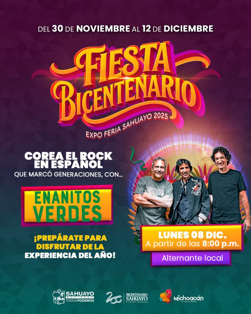 La Expo Feria Bicentenario Sahuayo 2025 continúa posicionándose como un espacio donde la cultura, la música y las tradiciones convergen, y la presentación de Enanitos Verdes es prueba de ello: un acto que conecta generaciones y que reafirma el poder del rock and roll en español.