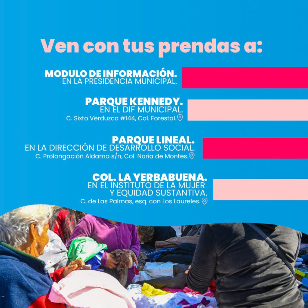 La colecta busca reunir chamarras, suéteres, bufandas, gorros, guantes y ropa térmica que serán entregados a familias y personas en situación vulnerable durante esta temporada invernal. Cada prenda donada representa un gesto de empatía, un recordatorio de que la dignidad también se construye con acciones sencillas, pero profundamente humanas.