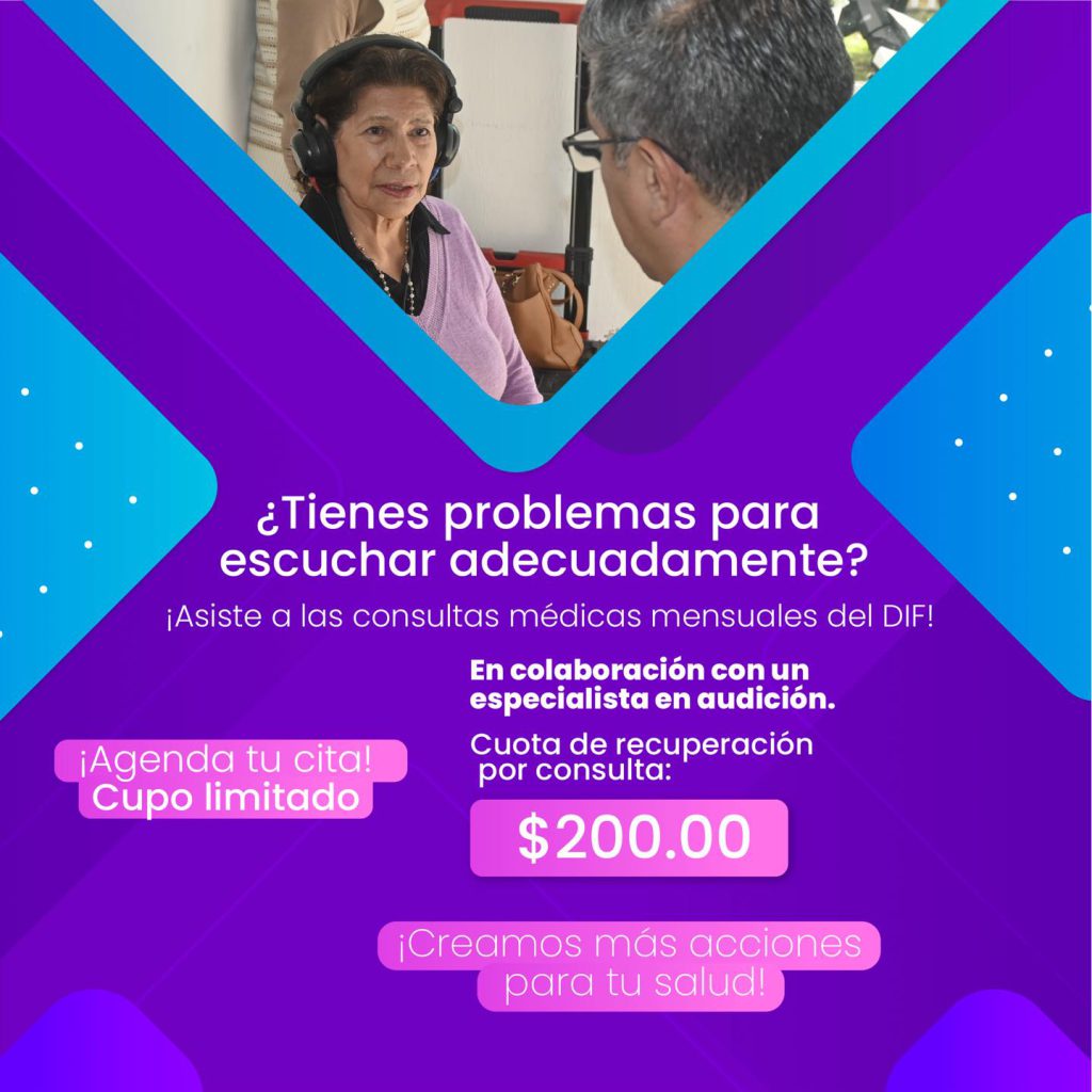 De acuerdo con el DIF municipal, las consultas se realizan de manera mensual, por lo que se invita a la ciudadanía interesada a agendar su cita con anticipación, ya que los espacios son limitados. La atención se ofrece con una cuota de recuperación de 200 pesos, lo que permite acercar servicios especializados a bajo costo.