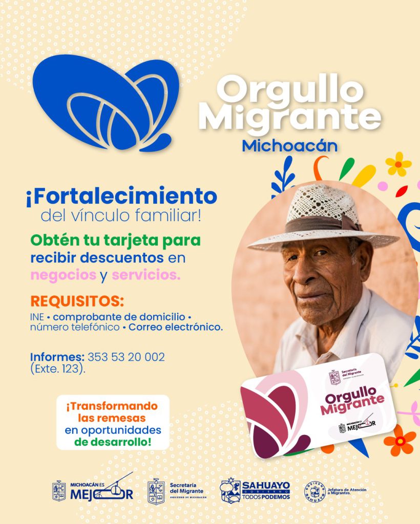 Sahuayo, Michoacán.— Con el objetivo de reconocer y fortalecer el vínculo con la comunidad migrante, el municipio de Sahuayo promueve la Tarjeta Migrante, un programa que busca traducir el esfuerzo de quienes trabajan fuera del país en beneficios directos para ellos y sus familias, contribuyendo así al desarrollo social y económico del municipio.