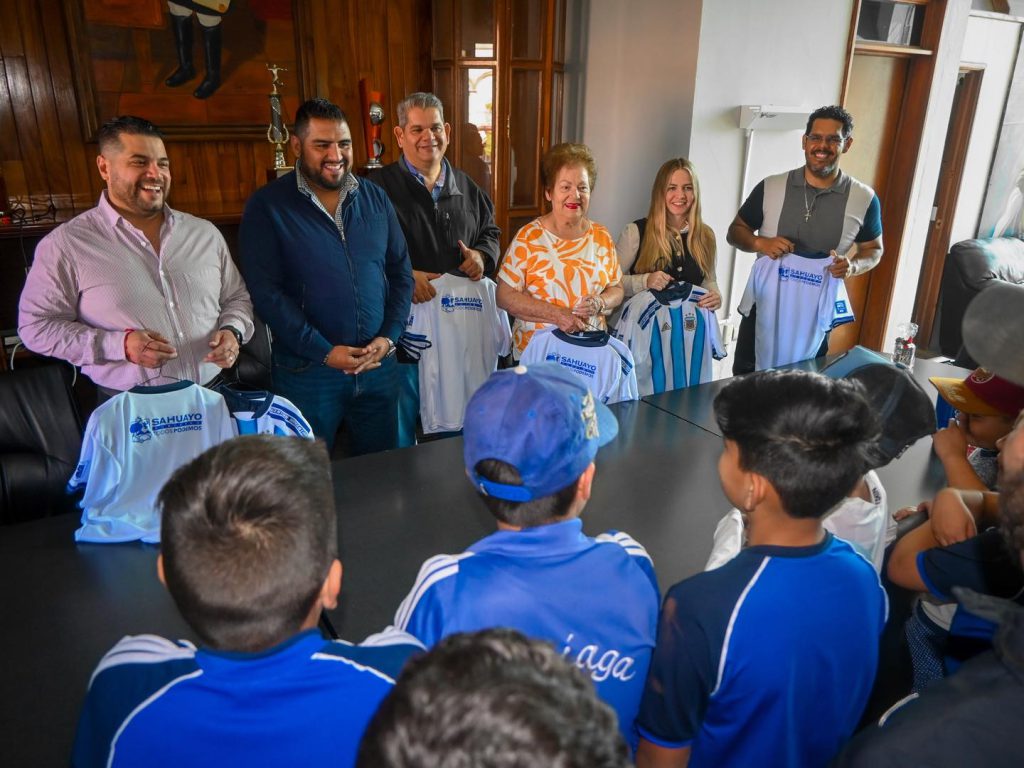 Sahuayo, Michoacán.— En un acto que combinó el impulso al deporte con el fortalecimiento del tejido social, autoridades municipales realizaron la entrega de uniformes deportivos a la primaria “Arriaga Rivera”, equipo que se coronó campeón de fútbol en el Torneo de Primarias de Gobierno, celebrado en la unidad deportiva municipal.