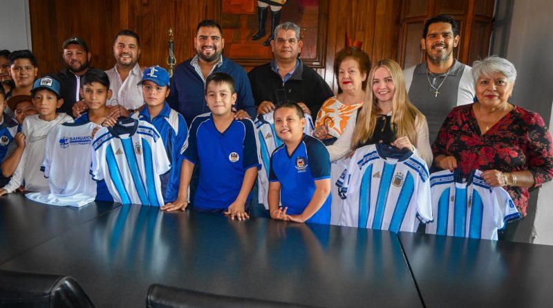 Sahuayo, Michoacán.— En un acto que combinó el impulso al deporte con el fortalecimiento del tejido social, autoridades municipales realizaron la entrega de uniformes deportivos a la primaria “Arriaga Rivera”, equipo que se coronó campeón de fútbol en el Torneo de Primarias de Gobierno, celebrado en la unidad deportiva municipal.