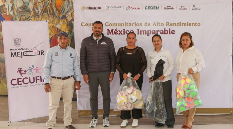 El director de la Comisión Estatal de Cultura Física y Deporte (Cecufid), Raúl Morón Vidal, encabezó la entrega de equipamiento deportivo en coordinación con Marlhem Alvarado Solís, jefa del Departamento de Atención a Centros Deportivos Municipales de la Conade. Este apoyo beneficia a los municipios de Uruapan, Zamora, Apatzingán, Cuitzeo, Tacámbaro, Lázaro Cárdenas, Sahuayo, Maravatío, Huetamo y Morelia, pilares del plan de los Centros de Alto Rendimiento “México Imparable”.