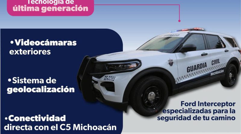 La Secretaría de Seguridad Pública (SSP) incorporó 60 nuevas unidades Ford Police Interceptor al esquema Guardianes del Camino, con el objetivo de fortalecer la vigilancia y el auxilio en las carreteras de Michoacán.