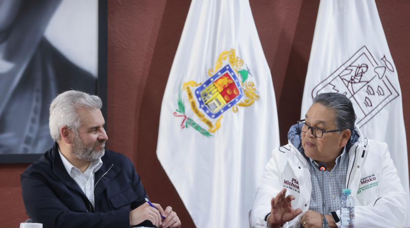 Morelia, Michoacán, 18 de enero de 2026.- El gobernador Alfredo Ramírez Bedolla y funcionarios del Instituto Mexicano del Seguro Social (IMSS), revisaron con los presidentes municipales de Zacapu, Jacona, Lázaro Cárdenas, La Piedad, Sahuayo, Tarímbaro y Jiquilpan, avances de los proyectos de obra para la construcción de Centros de Educación y Cuidado Infantil (CECI) en Michoacán.
