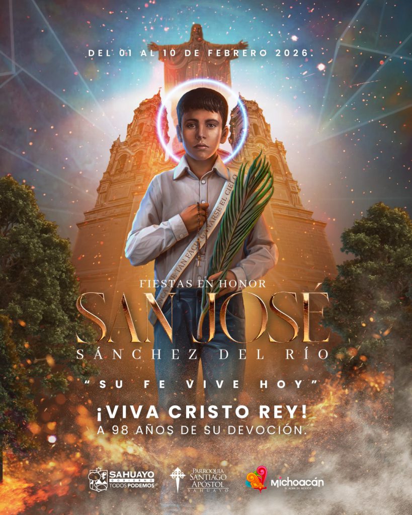 Sahuayo, Michoacán.– Del 1 al 10 de febrero, Sahuayo se transforma en un punto de encuentro para la fe, la memoria histórica y la expresión cultural con la celebración de las Fiestas en Honor a San José Sánchez del Río, cariñosamente conocido como Joselito, uno de los símbolos espirituales y sociales más significativos de la región.