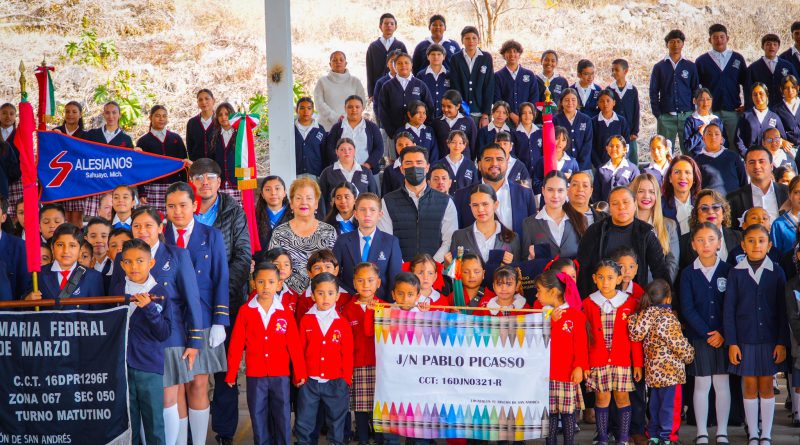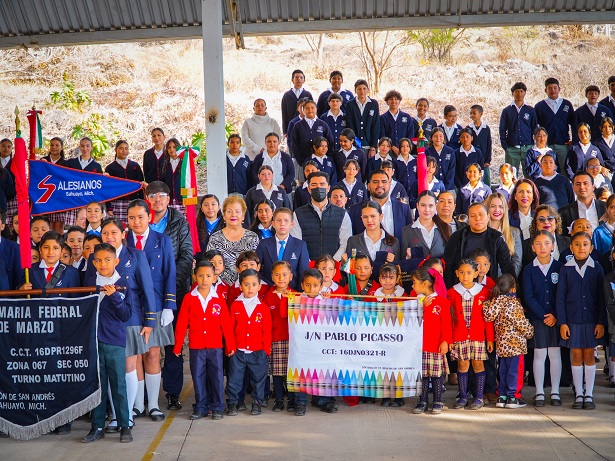 Sahuayo, Michoacán.— En el marco del 109 aniversario de la promulgación de la Constitución Política de los Estados Unidos Mexicanos, el presidente municipal de Sahuayo, Dr. Manuel Gálvez Sánchez, participó en el acto cívico conmemorativo realizado con la activa intervención de la comunidad educativa del Rincón de San Andrés.