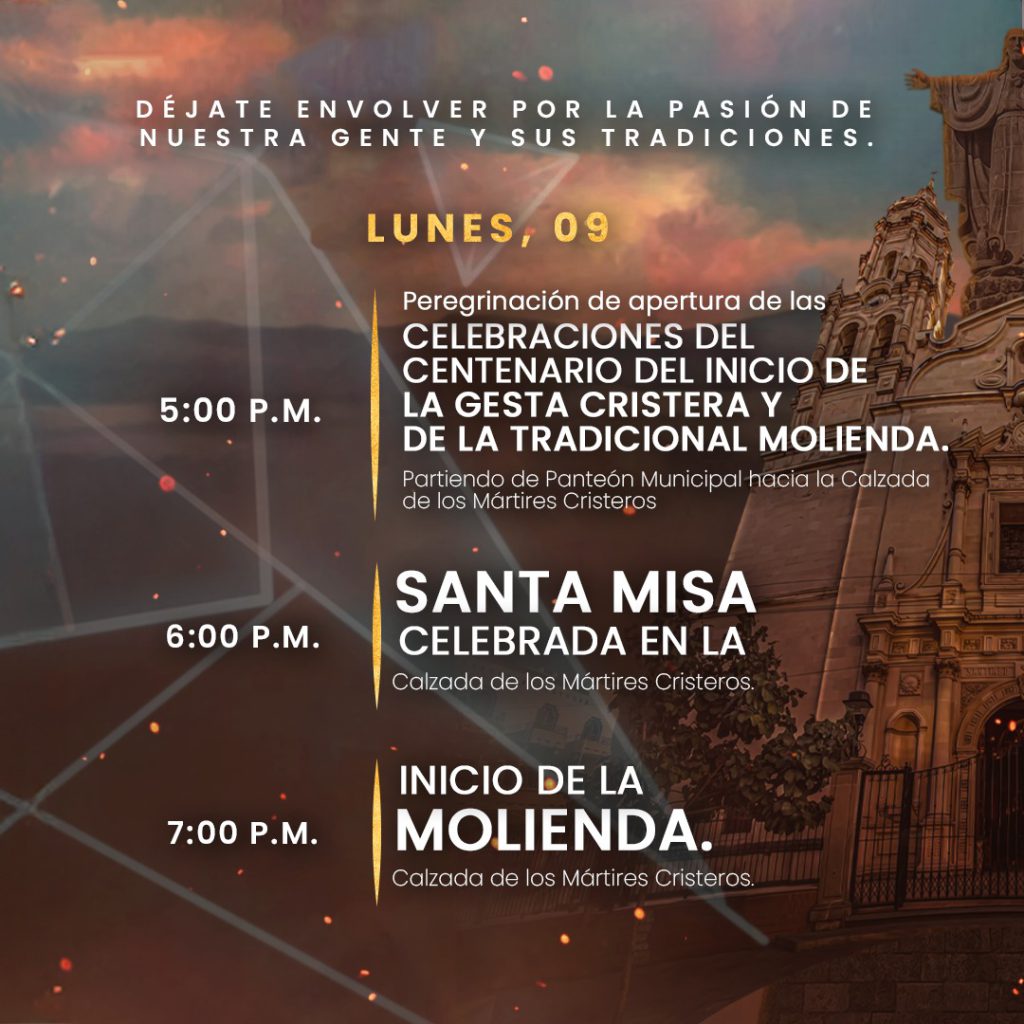 Para los días domingo 8 y lunes 9, se ha preparado un programa especial de actividades religiosas y tradicionales, que invita a la comunidad y a los visitantes a participar activamente en los actos de culto, reflexión y convivencia, reafirmando el legado espiritual de San José Sánchez del Río, ejemplo de valentía, fidelidad y amor a Cristo.