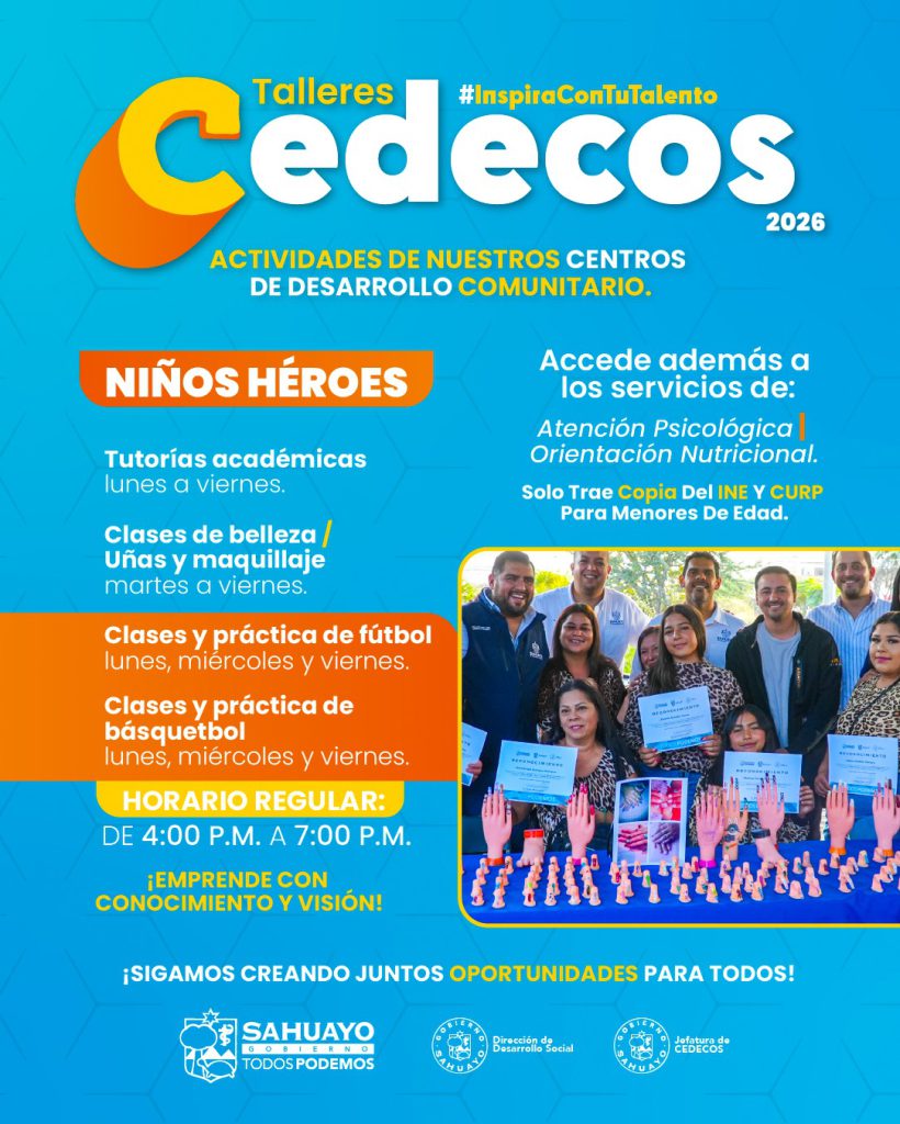 El Centro de Desarrollo Comunitario Niños Héroes (CDECO) anunció su programa de talleres y actividades para este 2026, consolidándose como un espacio de formación, convivencia y fortalecimiento social en la colonia Niños Héroes, conocida como Ciudad Perdida, en el municipio de Sahuayo.