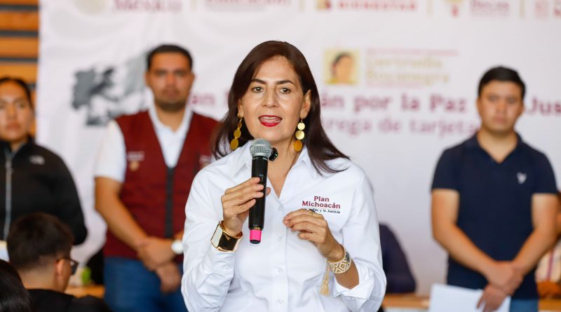 Morelia, Michoacán, 24 de febrero de 2026.- La secretaria de Educación, Gabriela Molina, informó que la entrega de tarjetas bancarias del programa de becas Gertrudis Bocanegra se realizará los días 25 y 26 de febrero, para quienes no pudieron recogerlas men la fecha que les tocaba. Este ajuste en el calendario permite dar continuidad a la estrategia integral del Plan Michoacán por la Paz y la Justicia, tras la reprogramación de las fechas iniciales.