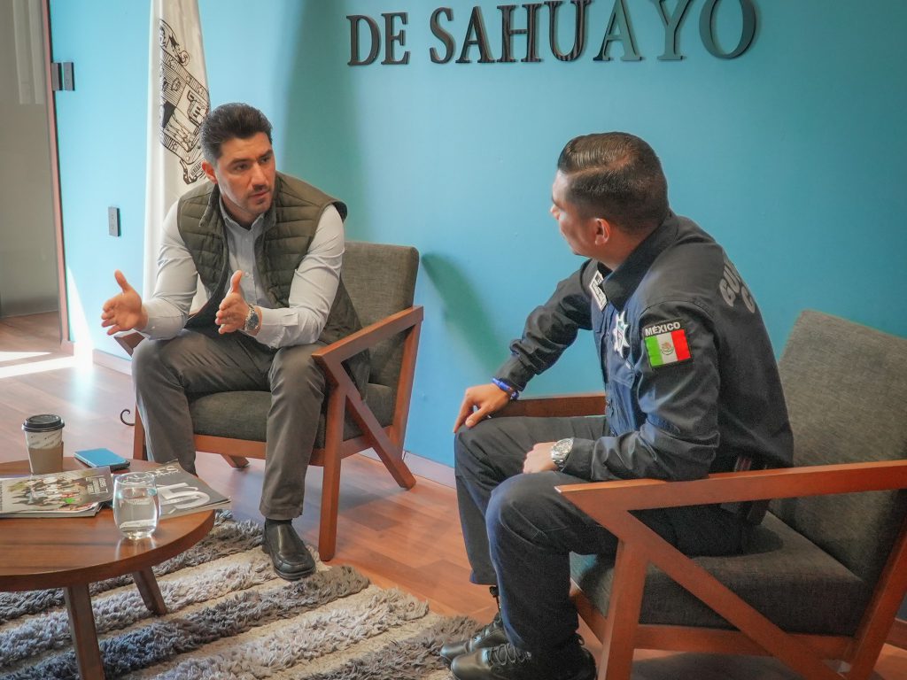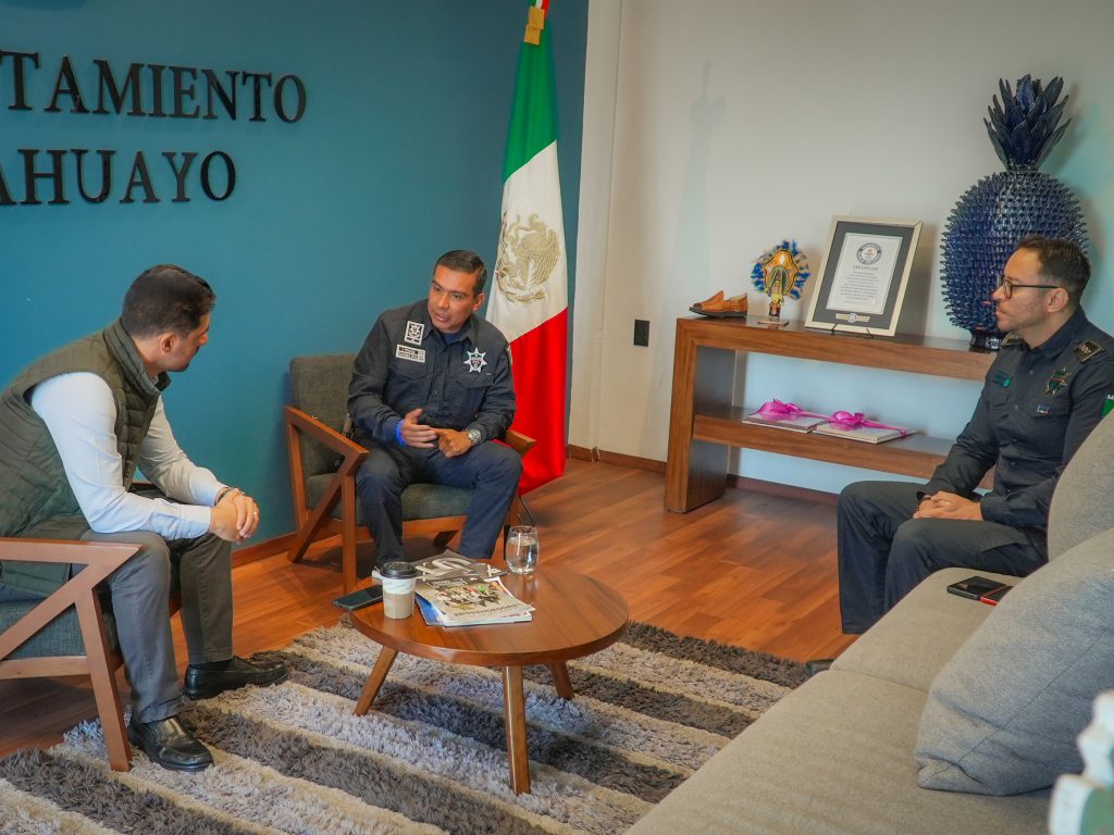 El encuentro se realizó con el Lic. Óscar I. Tinoco Espinoza, Comisario Regional de la Guardia Civil con base en Jiquilpan, así como con el Dr. José R. Ruiz Manzano, Director de Seguridad Pública de Sahuayo, con el objetivo de revisar estrategias, evaluar resultados y consolidar la coordinación interinstitucional en materia de prevención y reacción ante hechos delictivos.