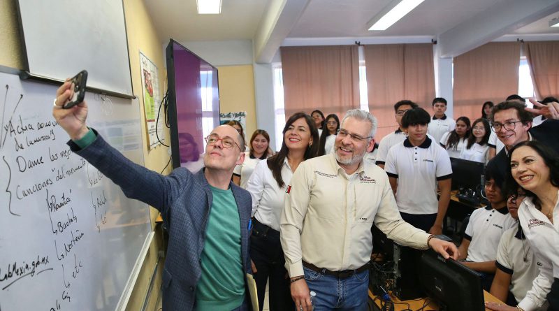 El mandatario felicitó a las y los jóvenes de nivel bachillerato del plantel Villas del Pedregal, en su interés por certificarse en el Centro Público de Formación en Inteligencia Artificial, el más grande de América Latina, y los invitó a registrarse en la plataforma data.michoacan.gob.mx, para acceder a 4 GB de internet gratuito al mes, como parte de su formación académica.