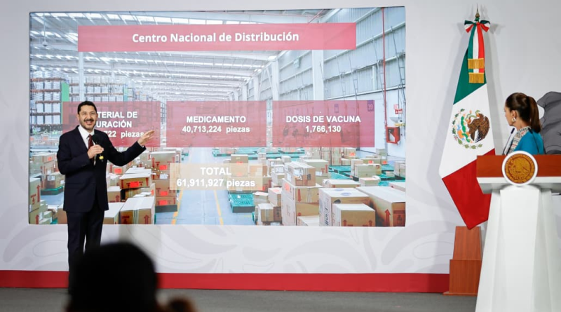 “En el CENADI, el Centro Nacional de Distribución, que tenemos acá en Lago de Guadalupe, hay 61 millones de piezas, casi 62 millones. De esas, 20 millones de piezas son de materiales de curación, 40 millones de piezas son de medicamentos y hay un millón 766 mil vacunas”, dijo.