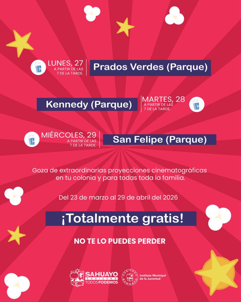 Sahuayo, Michoacán.— Durante el mes de abril, el programa Cine Móvil continúa su recorrido por diversas colonias de Sahuayo, ofreciendo funciones gratuitas de cine al aire libre para niñas, niños y familias, como parte de una iniciativa que busca fomentar la convivencia y el acceso a la cultura.